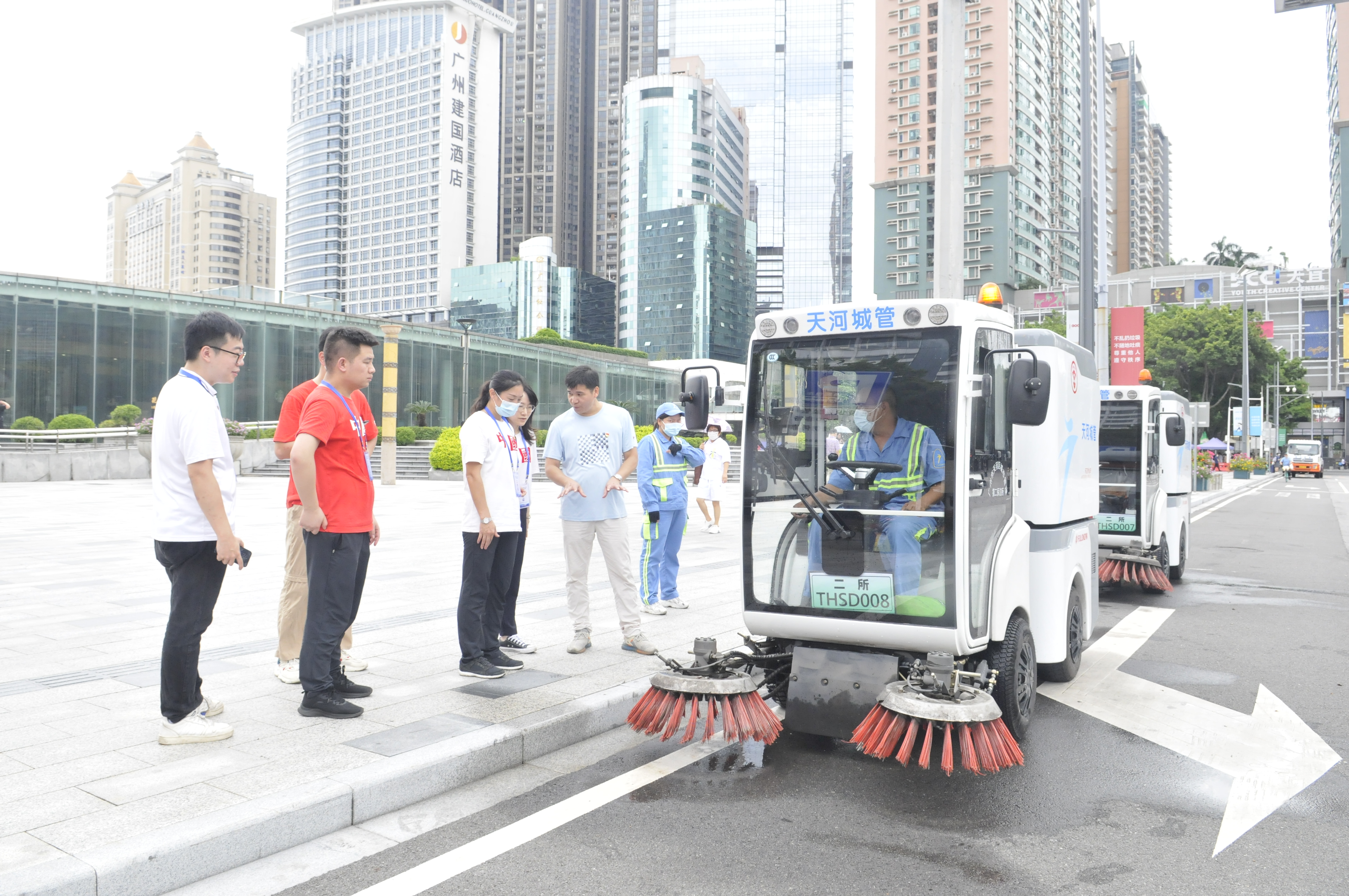 捐赠仪式结束后,志愿者们在天幕广场与环卫工人们一起劳动,一同体验户外劳动的艰辛与不易。