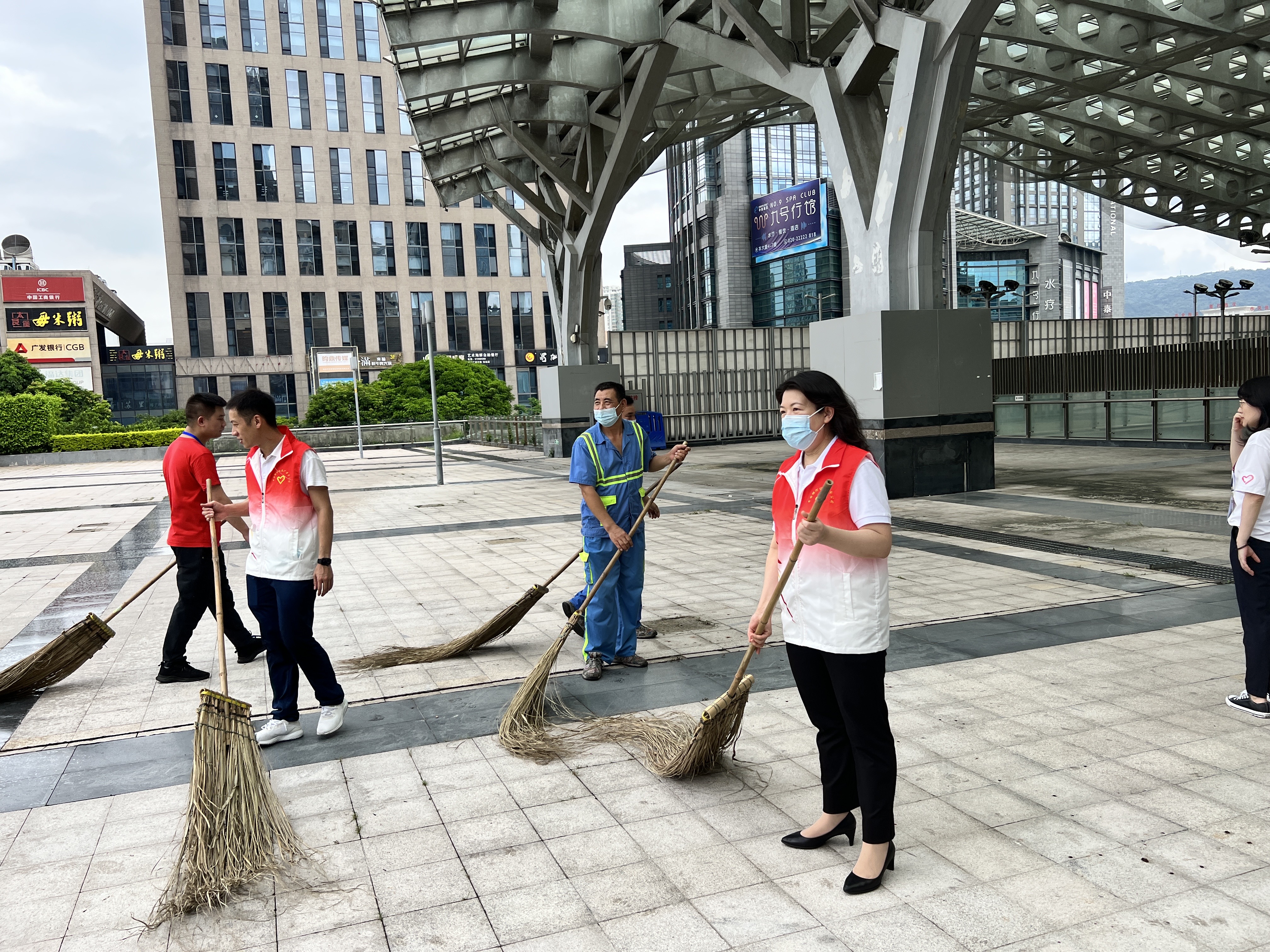8月19日上午,由新华保险广东分公司牵头,联合银河证券广东分公司、中国大地保险广东分公司共3家在粤中投直管企业组成一支共28人的联合志愿者队伍,前往著名的地标建筑——广州东站天幕广场,共同举行“关爱环卫工人‘粤’享公益行动”慰问活动,为一线的环卫工人送去真挚的关爱。