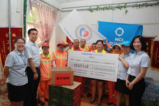 8月1日上午,“城市因你而美•新华伴你而行——新华保险关爱全国环卫工人大型公益行动”来到大连,新华人寿保险公益基金会向大连市8190名环卫工人(包括庄河市690名环卫工人)每人赠送10万元保额的人身意外伤害保险,合计捐赠保额8.19亿元人民币。