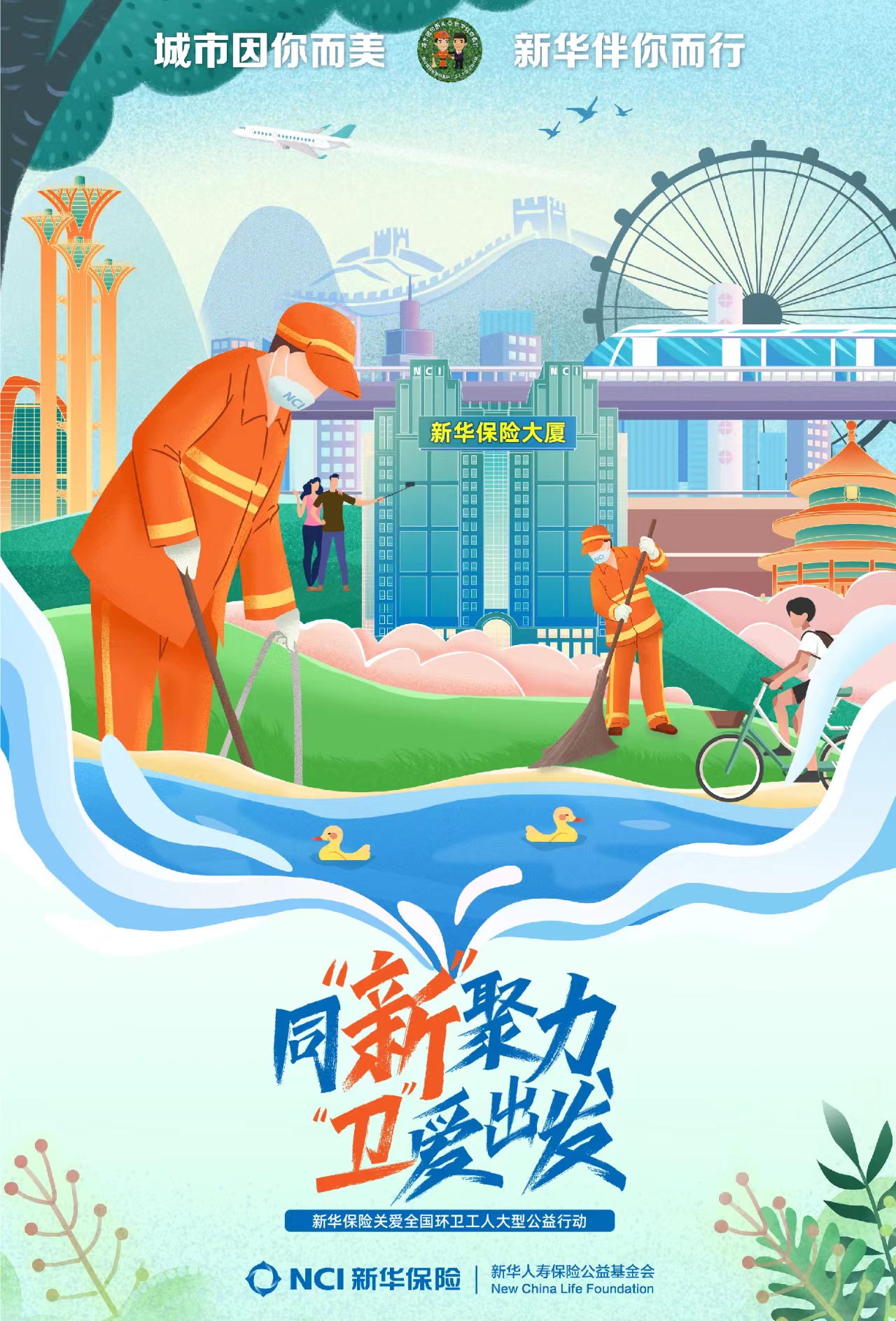 “城市因你而美·新华伴你而行——新华保险关爱全国环卫工人大型公益行动”始于2017年8月。该项目作为基金会实施的首个项目、主打项目、特色项目,致力于提升环卫工人群体的保障水平,改善环卫生存状况,倡导关爱环卫群体。目前该项目已经成为国内覆盖面最广、惠及人最多、影响力最大的环卫工人群体专属公益项目。