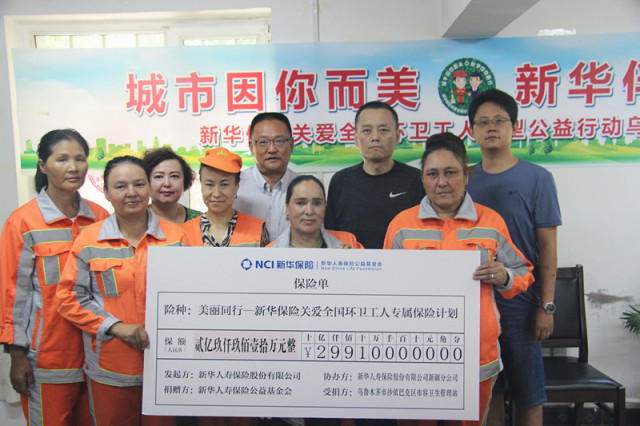 6月14日,新华保险关爱全国环卫工人大型公益行动在乌鲁木齐举行捐赠仪式。